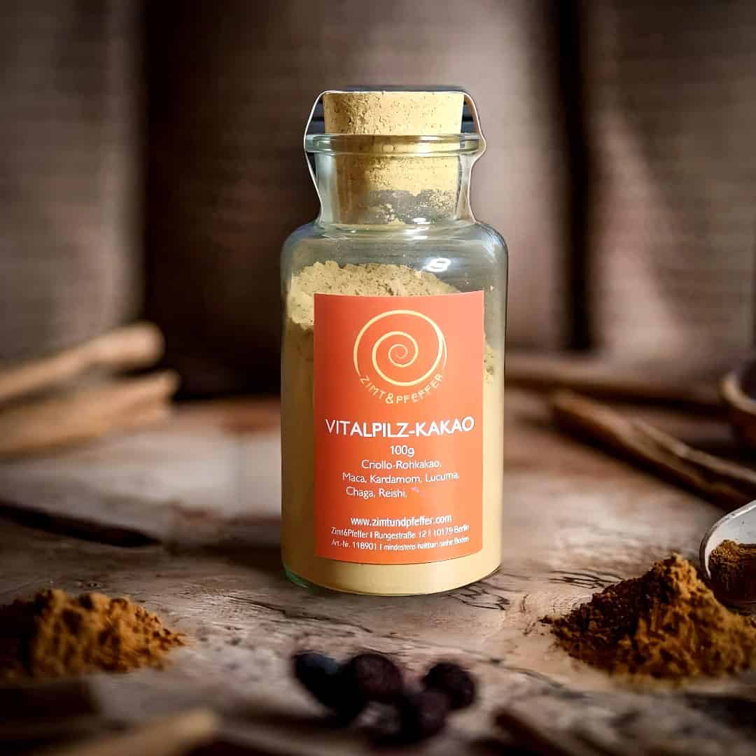 Vitalpilz-Kakao kaufen – Hochwertige Superfood-Kakaomischung mit Rohkakao, Gewürzen und wertvollen Vitalpilzen