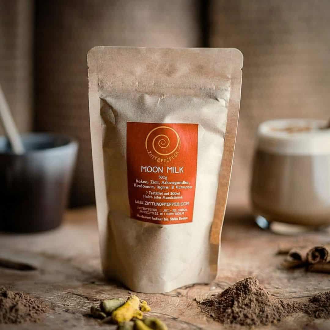 Moon Milk, auch als ayurvedische Mondmilch bekannt, ist ein wärmendes Gewürzgetränk für die Abendstunden – handgemischt mit Rohkakao, und harmonisierenden Gewürzen, wie Zimt, Ashwagandha, Kardamom, Ingwer, Kurkuma. Ideal für dein abendliches Ritual – beruhigend und vielseitig einsetzbar. Dieses Moon Milk Pulver vereint herrlichen Duft und harmonischen Geschmack – perfekt als warmes Abendgetränk zum Ausklang des Tages!